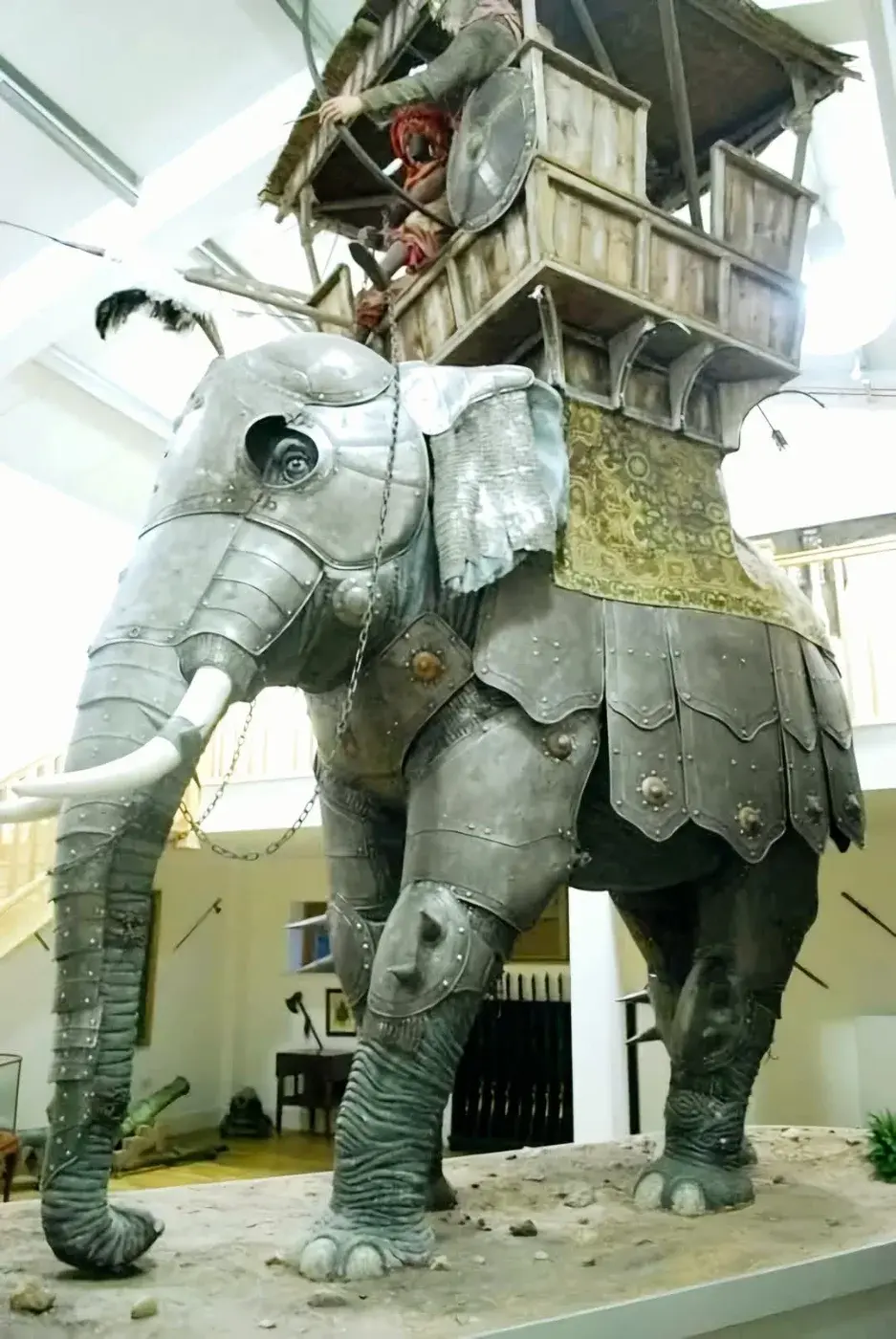 ชุดเกราะช้างศึกที่จัดแสดงในพิพิธภัณฑ์นี้ ทำจากโลหะและหนังสัตว์ ออกแบบเพื่อปกป้องช้างในสนามรบ ตั้งแต่บริเวณหัว คอ ลำตัว ไปจนถึงเท้า แสดงให้เห็นถึงความชาญฉลาดในการออกแบบยุทโธปกรณ์เพื่อรับมือกับศึกสงครามในสมัยโบราณ