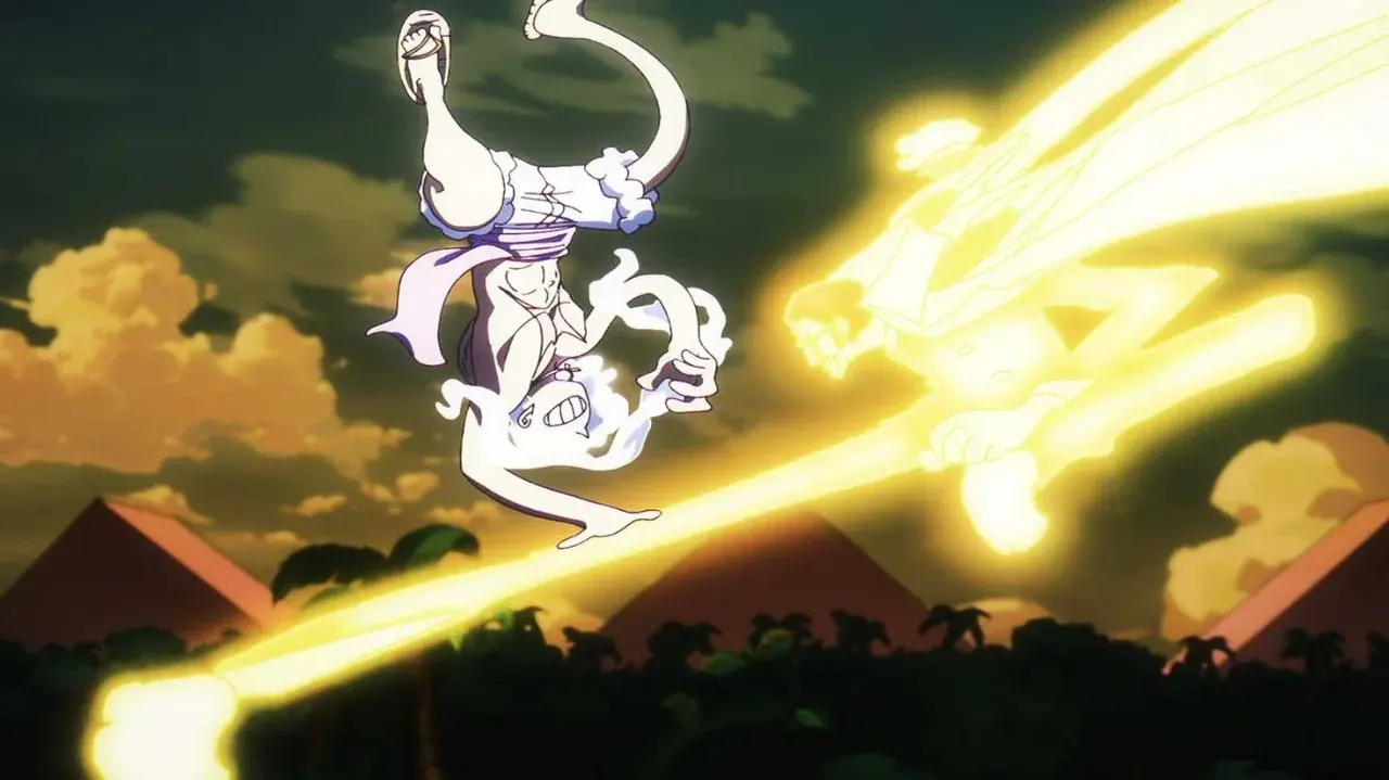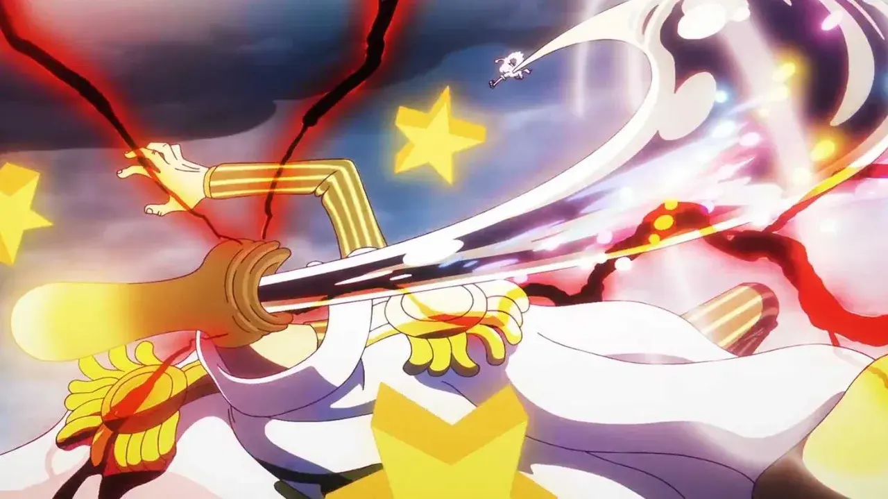 ขณะที่เวกาพังค์พยายามหลบหนี และลูฟี่กับโซโลยังคงต่อสู้กับคิซารุและลุชชี วงเวทย์บางอย่างก็ปรากฏขึ้นบนเกาะ และจากวงเวทย์นั้นเซนต์แซทเทิร์นก็ปรากฏตัวขึ้น โดยตอนนี้กลายเป็นร่างปีศาจขนาดยักษ์ที่ดูเหมือนแมงมุมท่ามกลางความสับสนวุ่นวายจากการมาถึงของแซทเทิร์น คิซารุก็ไล่ตามกลุ่มของเวกาพังค์ทัน แต่ลูฟี่ก็รีบสกัดกั้นคิซารุและช่วยให้พวกเขาหลบหนีได้ อย่างไรก็ตาม ลูฟี่เริ่มหมดแรงที่จะรักษาเกียร์ 5 ไว้ได้อย่างรวดเร็ว แต่ด้วยพลังที่เหลืออยู่ทั้งหมด เขาก็ปลดปล่อยการโจมตีที่รุนแรงใส่คิซารุจนเขาเหินเวหา