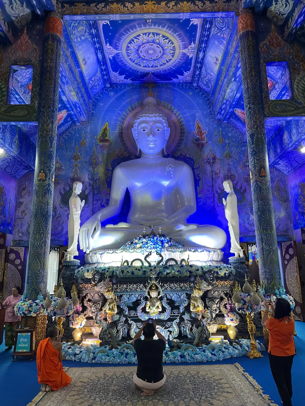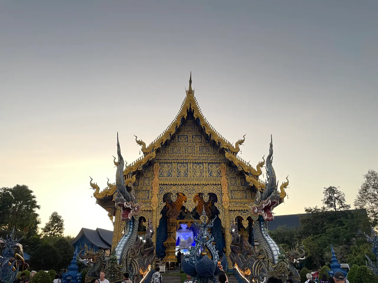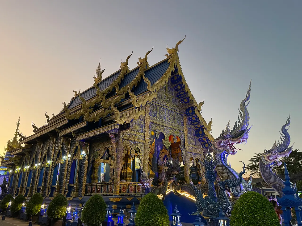 หากท่านมาช่วงเย็นหน่อย ทางวัดจะเริ่มมีการเปิดไฟ ซึ่งนั้นแหละพอได้เห็นแล้วยิ่งสวยวามขึ้นไปอีก จากแสงไฟที่กระทบกับสีของวิหาร บอกได้เลยว่ายิ่งมืด ยิ่งจะสวยงามไปอีกแบบหนึ่งแน่นอนเลยล่ะ