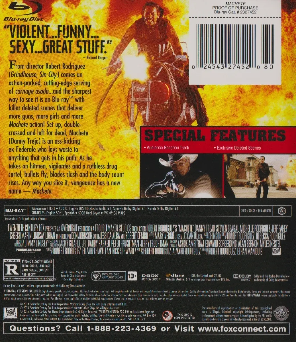 2.ความโหดด้วยคมมีดคมดาบ Machete ระดับ 10 กะโหลกไขว้ เรียกได้ว่าแค้นสะใจแบบไม่แคร์สิ่งใดในโลกหล้า ไม่เหมาะกับเด็ก ทั้งความรุนแรงและฉากร่วมรักบางช่วงที่ค่อนข้างแรงพอสมควร แต่ไม่ได้ให้ความรู้สึกหื่นกามนะ มันดูแล้วฮามากๆเลย และนี่แหละ ตำนานๆของจริง