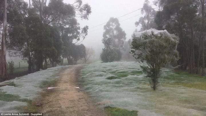 หากเพื่อนๆได้เห็นภาพทุ่งหญ้า ต้นไม้ หรือรั้วบ้านในออสเตรเลียที่ถูกปกคลุมไปด้วยเส้นใยสีขาวราวกับหิมะ อย่าเพิ่งตกใจไปว่าสภาพอากาศกำลังแปรปรวน เพราะสิ่งที่เห็นนั้น...ไม่ใช่หิมะเลยแม้แต่น้อย แต่มันคือ "ฤดูแมงมุม" นั่นเอง
