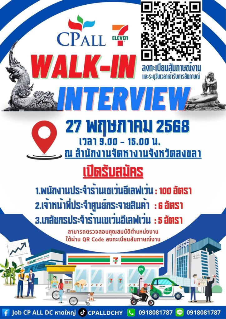 หากคุณกำลังมองหางานที่มั่นคงและมีโอกาสเติบโต วันนี้เรามีข่าวดีสำหรับชาวสงขลาและพื้นที่ใกล้เคียง CP ALL กำลังเปิดรับสมัครงานในหลายตำแหน่ง ผ่านกิจกรรม CP ALL Walk-In Interview X สำนักงานจัดหางานจังหวัดสงขลา ซึ่งเป็นโอกาสที่คุณสามารถเข้าร่วมได้ทันทีโดยไม่ต้องรอโทรนัดสัมภาษณ์ ขอเพียงคุณมีคุณสมบัติตรงตามที่กำหนด สามารถมาร่วมสมัครได้เลย