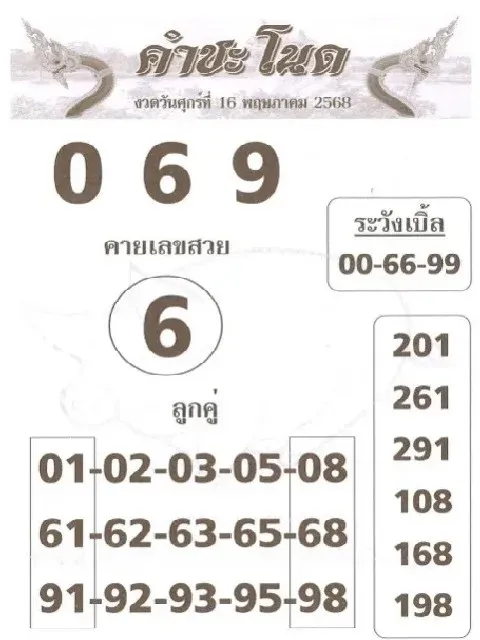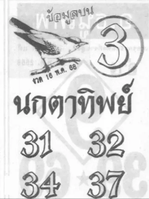 เลขเด็ด สำนักดัง นกตาทิพย์+ม้าสีหมอก+อาม่าให้ลาภ+คำชะโนด งวดวันที่ 16 พฤษภาคม 2568