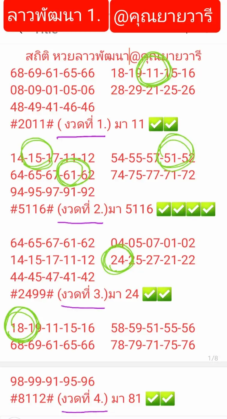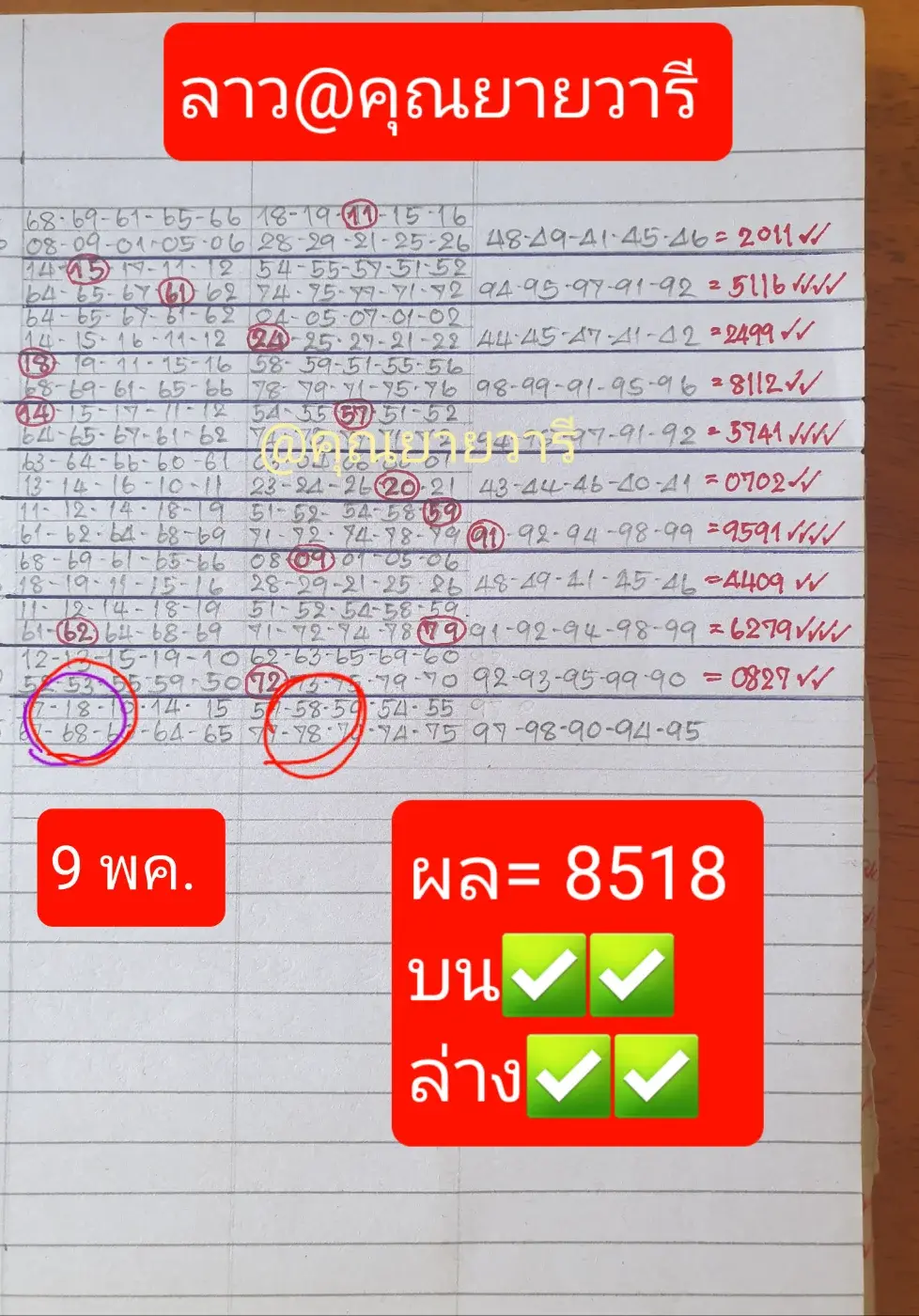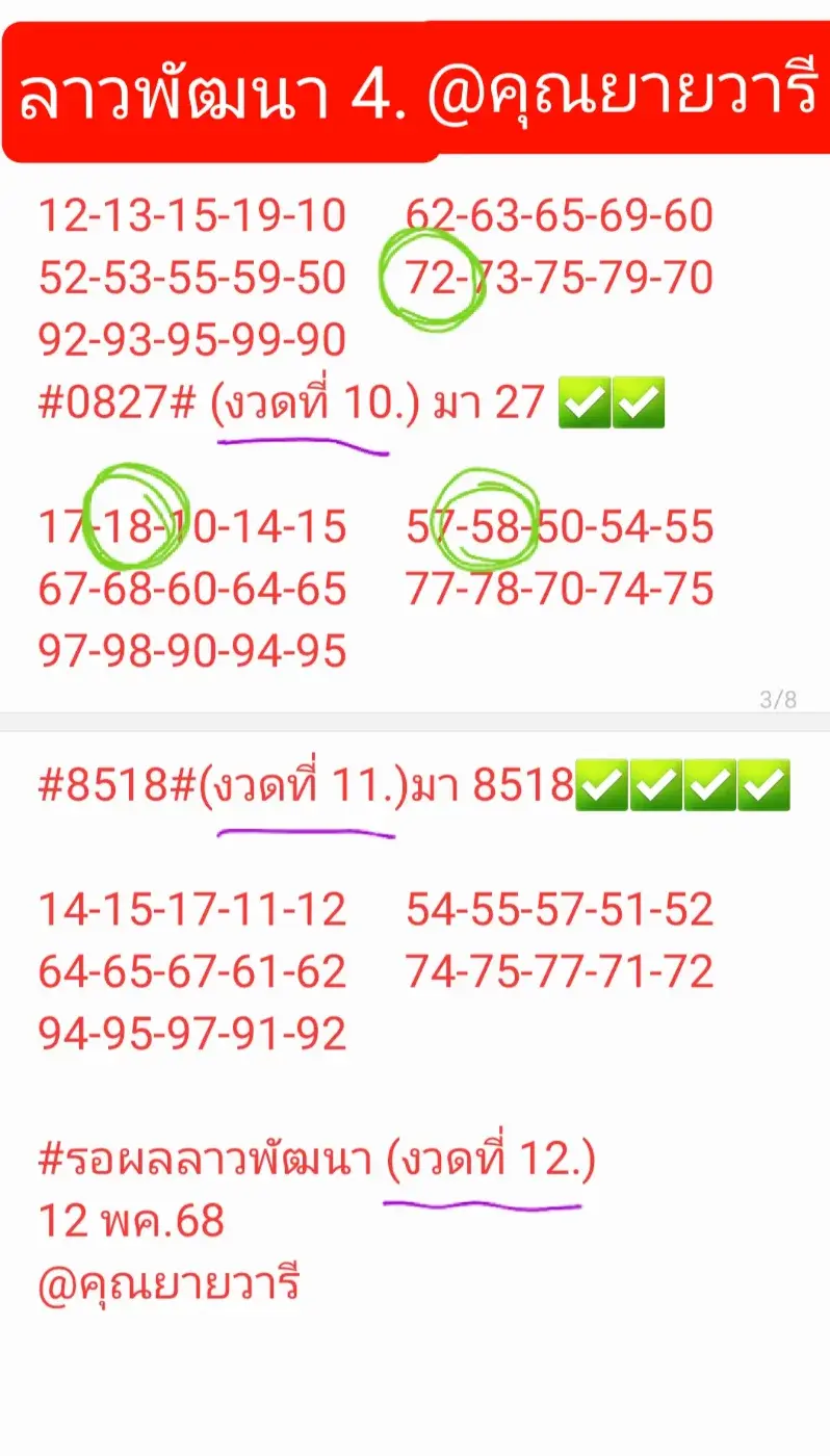 วันนี้ @คุณยายวารี เลยต้องลงแนวทางหวยลาวพัฒนาฯ (เวลาออกเลข 20.30 ทุ่ม ประเทศไทย) ในรูปแบบนี้แทน..