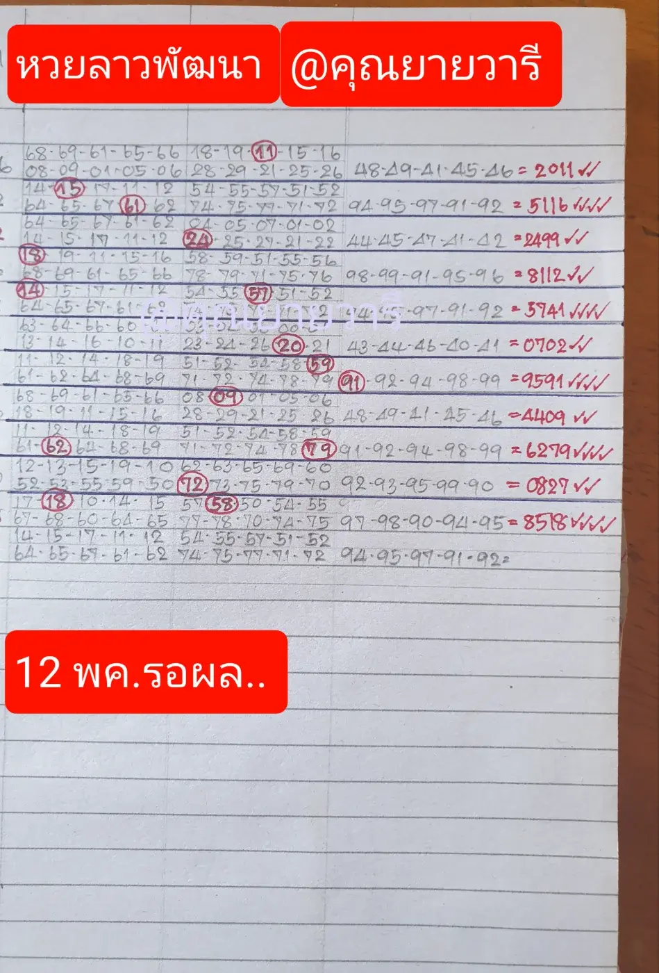 หวยลาวพัฒนาฯ 12 พค.68 @คุณยายวารีคนบ้าหวย