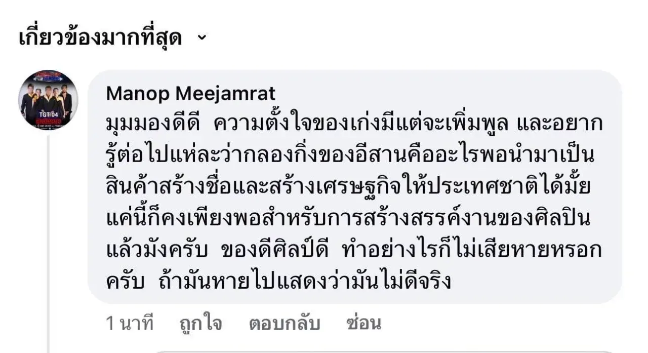 แม้จะมีเสียงวิจารณ์จากผู้รู้บางท่าน แต่ในอีกมุมกลับมีผู้ใหญ่ในวงการศิลปะ วัฒนธรรม และแฟนเพลงจำนวนไม่น้อยที่ออกมาปกป้อง และชื่นชมในความกล้าทดลองของเก่ง ที่พยายามทำเพลงวัฒนธรรมให้เข้าถึงคนรุ่นใหม่ได้