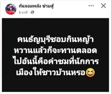 "กันจอมพลัง" โพสต์เดือด ลั่น คนธัญบุรีชอบกินหญ้าหวาน หลังพีชคว้าชัยชนะศึกเลือกตั้ง!