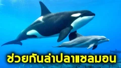 วาฬเพชฌฆาตจับคู่กับโลมาล่าปลาแซลมอน