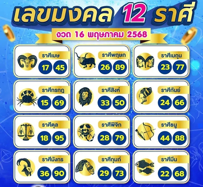 เลขมงคล 12 ราศี งวดวันที่ 16 พฤษภาคม 68..พรุ่งนี้รวย ซื้อหวยก่อนใคร!