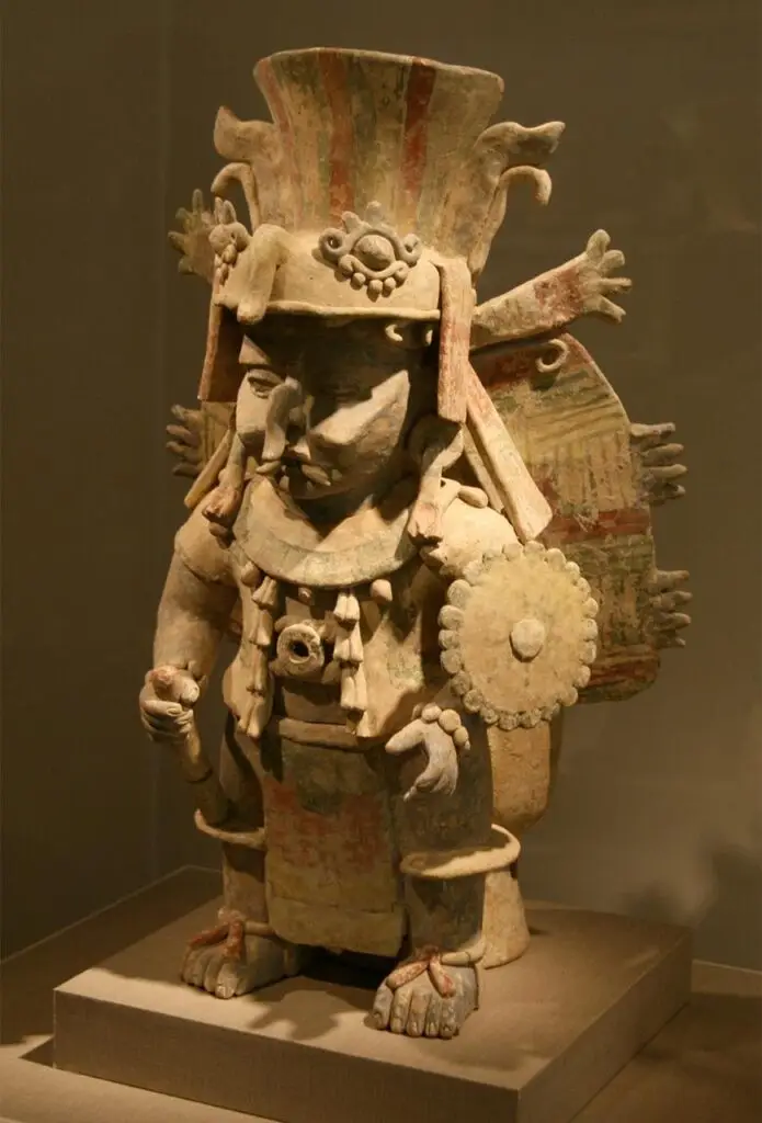 แจกันดินเผาจำลอง (เตาเผาธูป) ที่มีรูปเทพเจ้าแห่งฝนของชาวมายาชื่อชาอัค ศตวรรษที่ 12–14 เครดิต: Leonard G