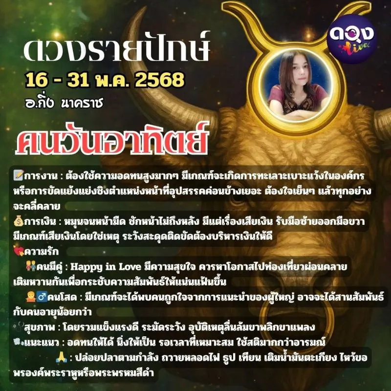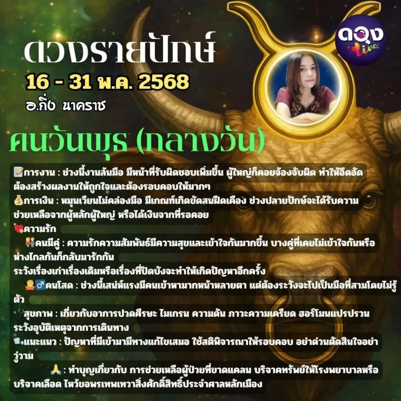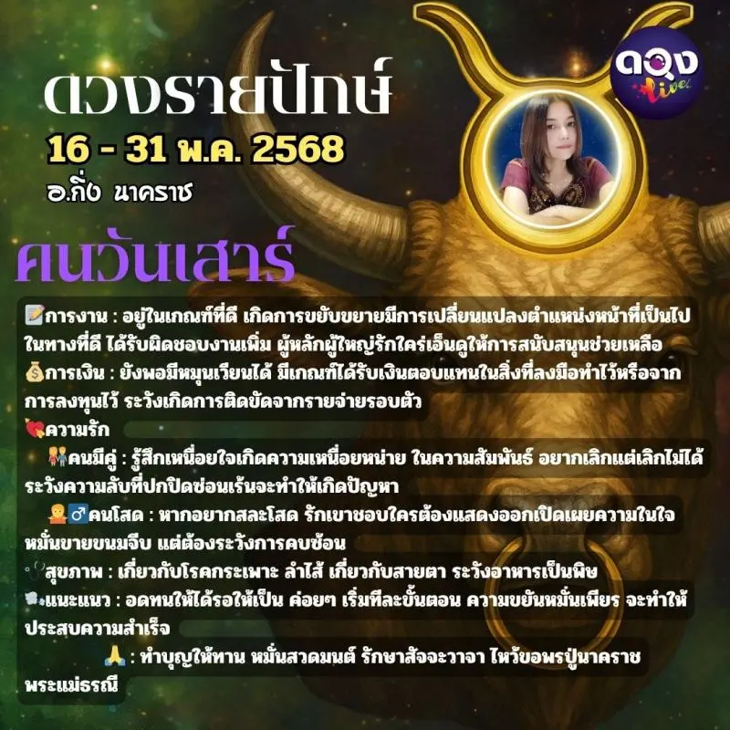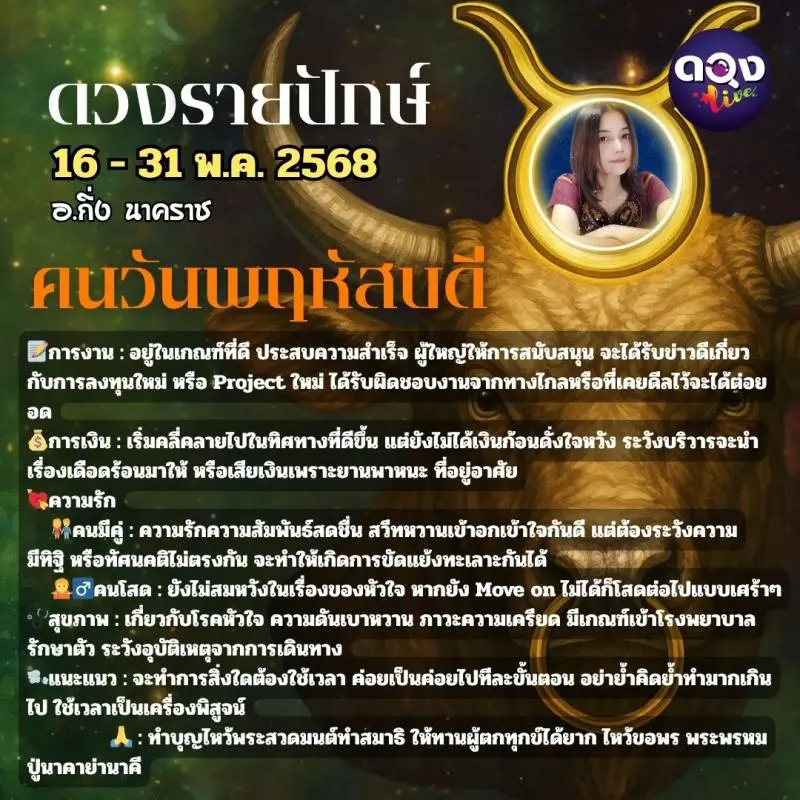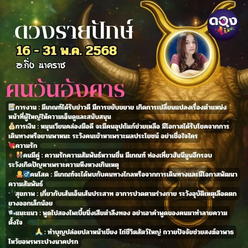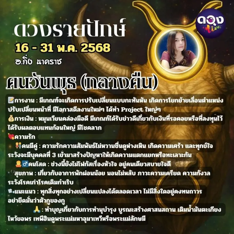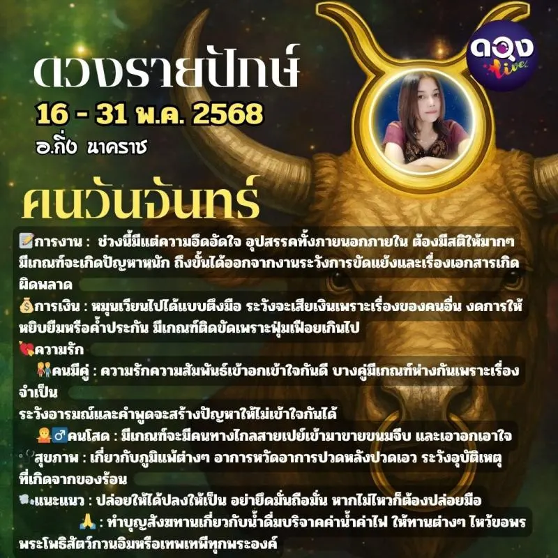 ดวงรายปักษ์ 16 - 31 พ.ค. 2568 by อ.กิ่ง นาคราช