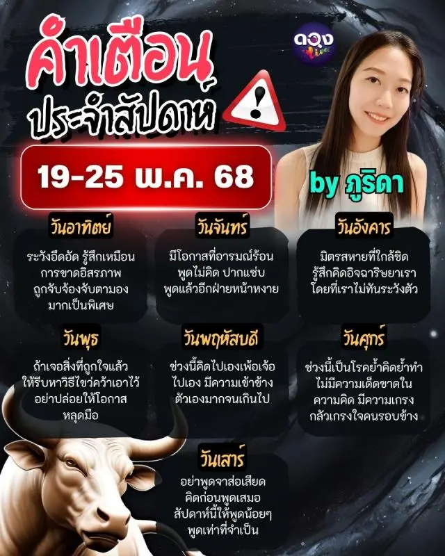 คำเตือนประจำสัปดาห์ 19-25 พ.ค. 68 by ภูริดา