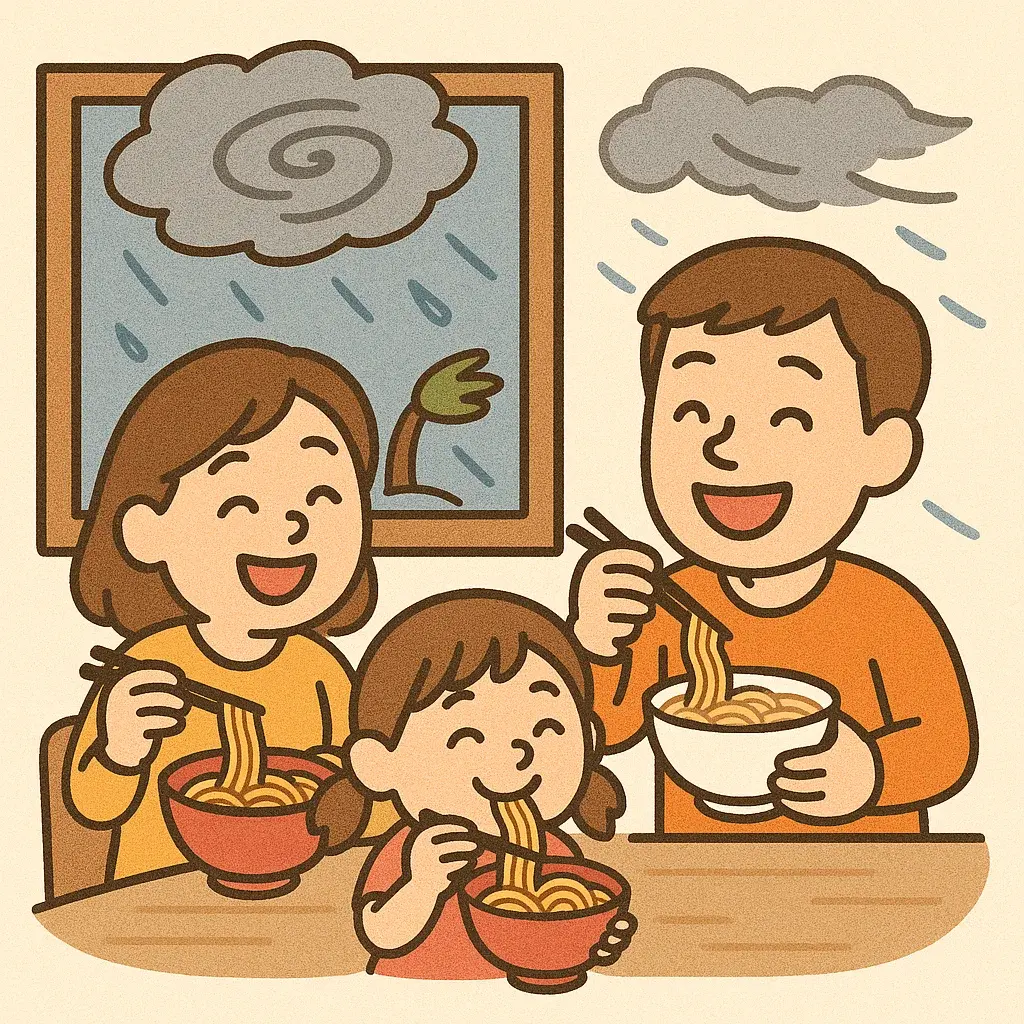 จะพายุเข้า แผ่นดินไหวสั่น เค้าก็ยังยิ้ม และพร้อมรับมือได้อย่างดี แถมยังมีมุกขำๆ ว่า “หยุดงานไต้ฝุ่นคือวันพักผ่อนของจักรวาล” 555 ☕📺🍜