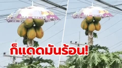 ก็แดดมันร้อน! เมื่อต้นมะละกอที่หวงดั่งลูก ยืนต้นตากแดดตามลำพัง ต้องหาที่กำบังให้ซะหน่อย