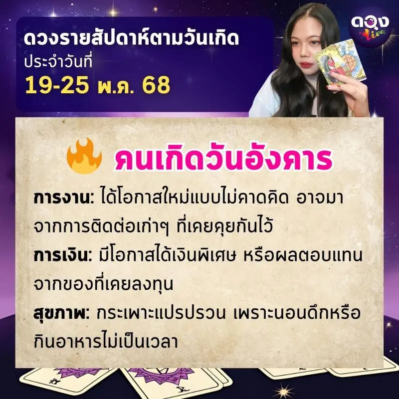 ดวงรายสัปดาห์ตามวันเกิดประจำวันที่ 19 – 25 พฤษภาคม 2568