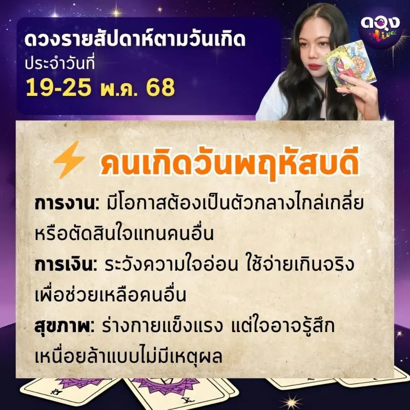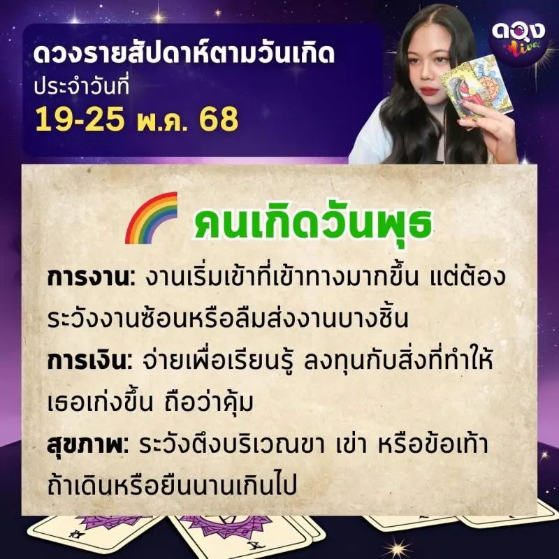 ดวงรายสัปดาห์ตามวันเกิดประจำวันที่ 19 – 25 พฤษภาคม 2568 by Junna Healing Heart