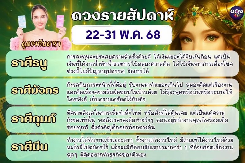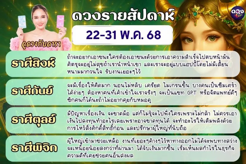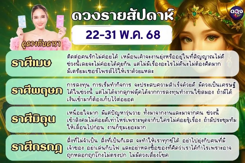 ดวงรายสัปดาห์ 22–31 พฤษภาคม 2568 byดูดวงกับดารา