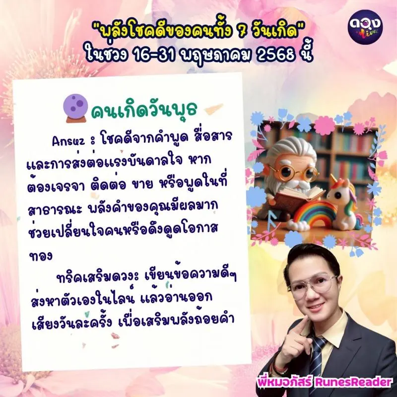 พี่หมอภัสร์ RunesReader จะพาเปิด “พลังโชคดีของคนทั้ง 7 วันเกิด”