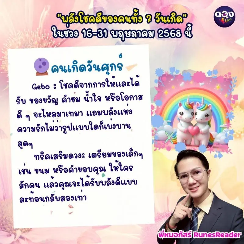 🔮 คนเกิดวันศุกร์ Gebo : โชคดีจากการให้และได้รับ ของขวัญ คำชม น้ำใจ หรือโอกาสดีๆ จะไหลมาเทมา แถมพลังแห่งความรักไม่ว่ารูปแบบใดก็เบ่งบานสุดๆ