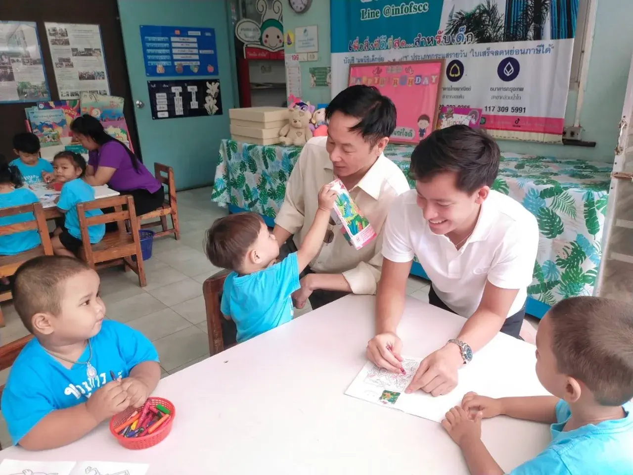นอกจากการแบ่งปันสิ่งของ ทั้งสองยังนั่งเล่น พูดคุย และส่งมอบความอบอุ่นให้กับเด็กๆ อย่างเป็นกันเอง ทำเอาทีมงานและเจ้าหน้าที่ในมูลนิธิต่างปลื้มปริ่มใจ...