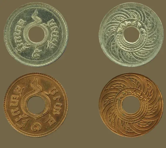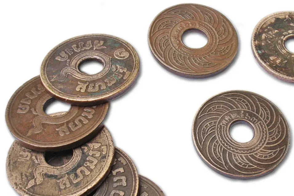 ในอดีตสามารถร้อยเชือกเก็บเหรียญไว้รวมกันได้ ไม่หล่นหายง่าย