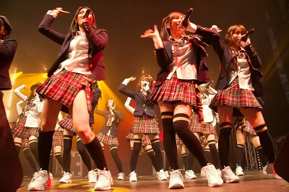 การนำภาพลักษณ์ของเด็กสาววัยมัธยมมาใช้ในเชิงธุรกิจไม่ใช่เรื่องใหม่ในญี่ปุ่น สิ่งนี้เฟื่องฟูมาตั้งแต่ยุค 90s และมักปรากฏในอนิเมะและมังงะหลายเรื่อง นอกจากการแสดงเพลงแล้ว ไอดอลยังให้บริการอื่นๆ เช่น การสัมผัสจับมือ หรือถ่ายภาพพร้อมลายเซ็น เพื่อสร้างความผูกพันกับแฟนคลับ
