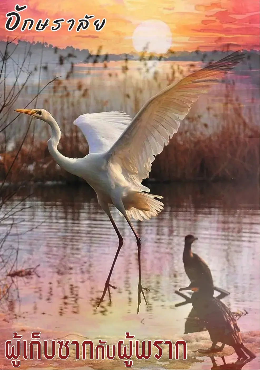แสงสีทองของอาทิตย์ยามสายตกกระทบลงบนลำคอระหงของนกกระยาง ทำให้เส้นเลือดฝอยใต้ผิวหนังดูคล้ายเส้นด้ายสีแดงที่ทอรวมเข้ากับขนสีขาว มันเป็นช่วงเวลาที่โลกดูเหมือนจะหยุดนิ่ง เป็นความเงียบงันที่แม้แต่เสียงลมยังไม่กล้าจะทำลาย