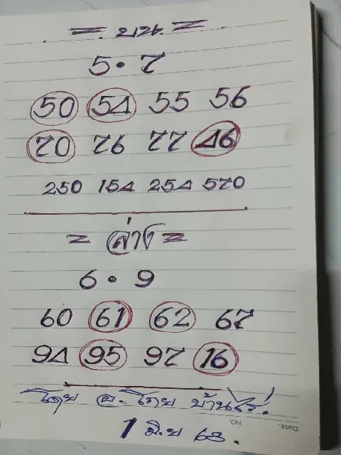 เลขเด็ด สำนักดัง นู๋น้ำทิพย์+หนุ่มบรบือ+อ.โกยบ้านไร่ งวดวันที่ 1 มิถุนายน 2568