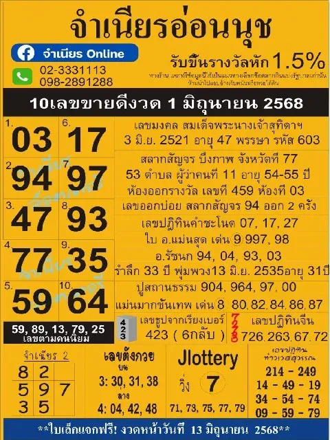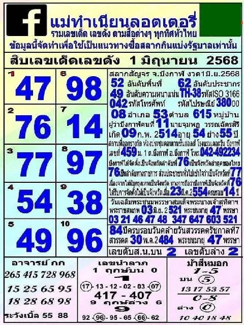 ส่องเลขเด็ด!! มัดรวม 10อันดับ เลขเด็ดขายดี 1 มิถุนายน 2568