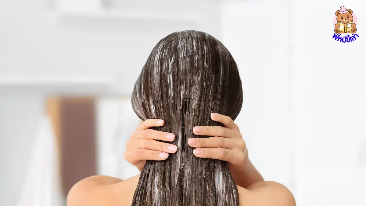 ชโลมให้ทั่วศีรษะ ทิ้งไว้ประมาณ 1 ชั่วโมง