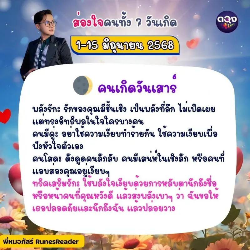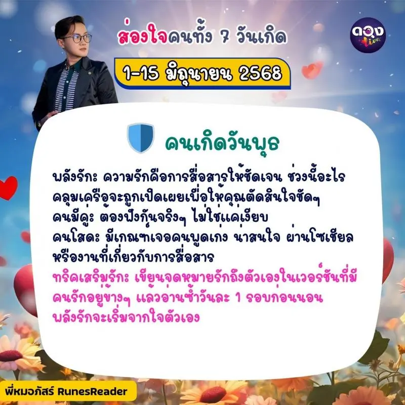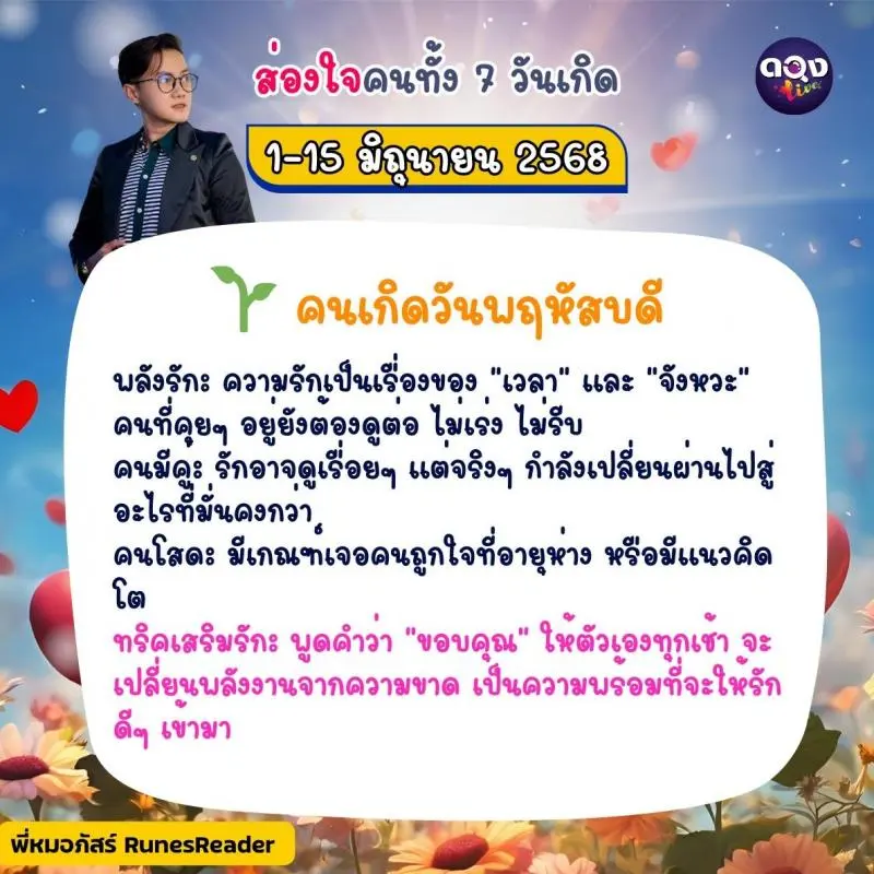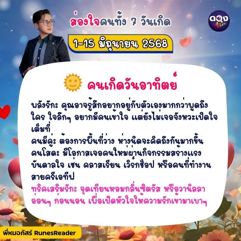 ส่องใจคนทั้ง 7 วันเกิด ในช่วง 1–15 มิถุนายน 2568 by พี่หมอภัสร์ Runes Reader