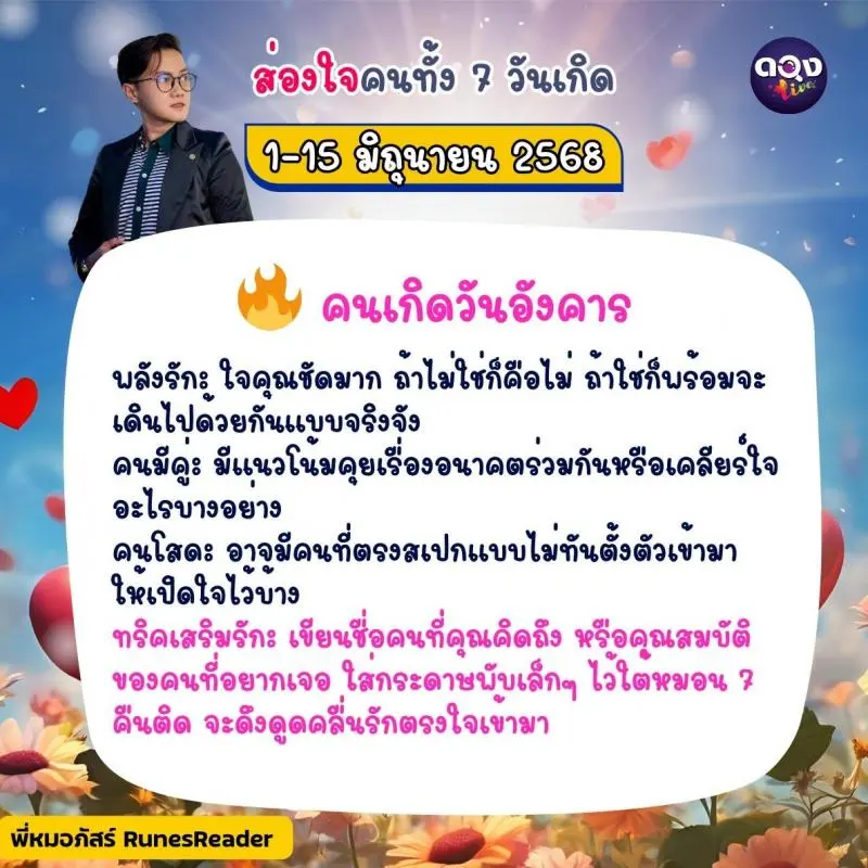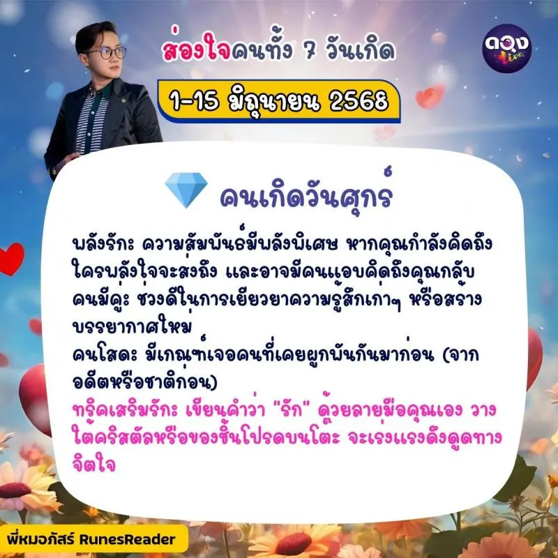 ส่องใจคนทั้ง 7 วันเกิด ในช่วง 1–15 มิถุนายน 2568