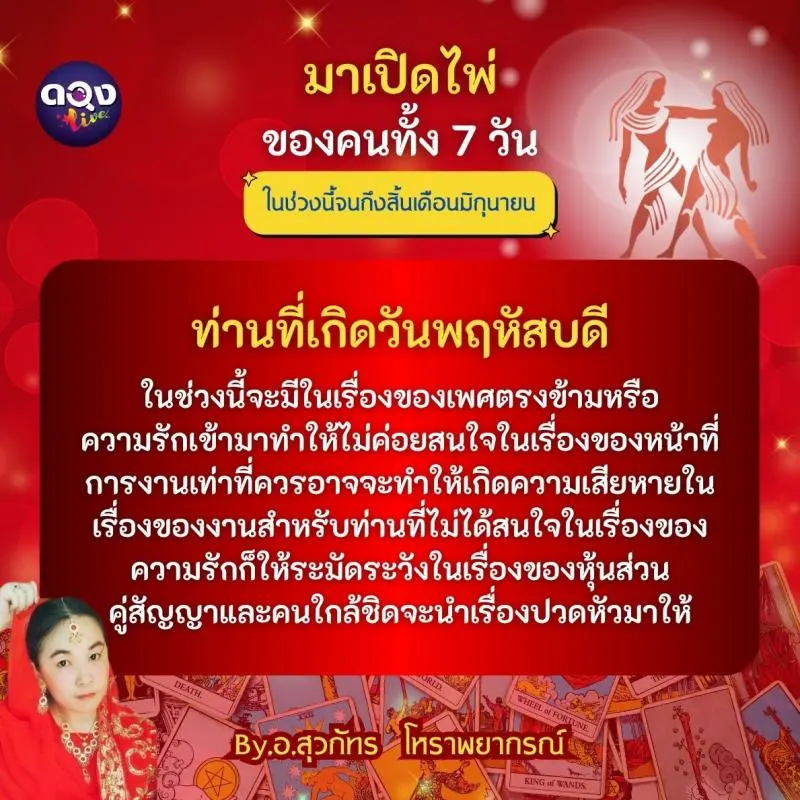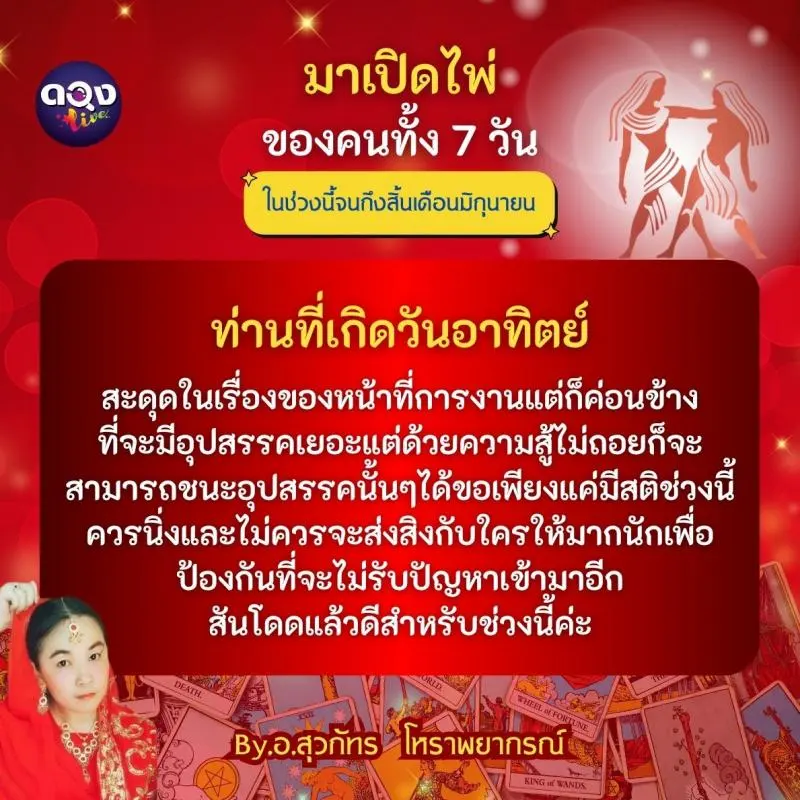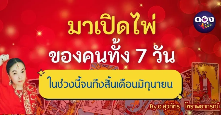มาเปิดไพ่ของคนทั้ง 7 วันในช่วงนี้จนถึงสิ้นเดือนมิถุนายน Byอ.สุวภัทร โหราพยากรณ์