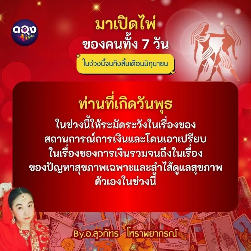 มาเปิดไพ่ของคนทั้ง 7 วันในช่วงนี้จนถึงสิ้นเดือนมิถุนายน