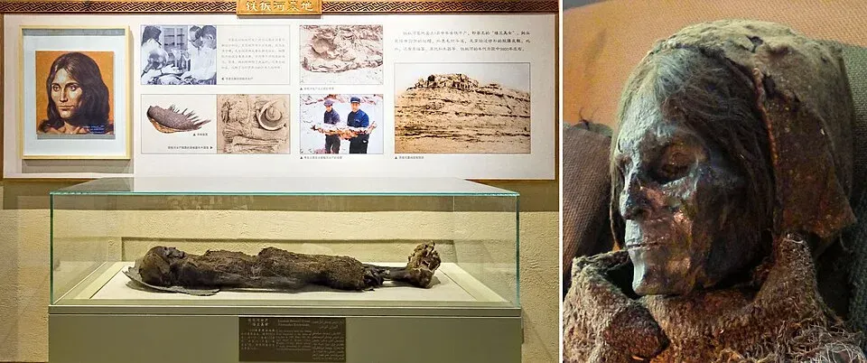 - ความงามแห่งหลัวหลาน (Beauty of Loulan): มัมมี่หญิงอายุประมาณ 3,800 ปี ถูกค้นพบในปี 1980 ที่ลัวหลาน เธอสวมเสื้อผ้าทำจากขนสัตว์ และมีสิ่งของต่างๆ เช่น หวีไม้และตะกร้าในหลุมศพ