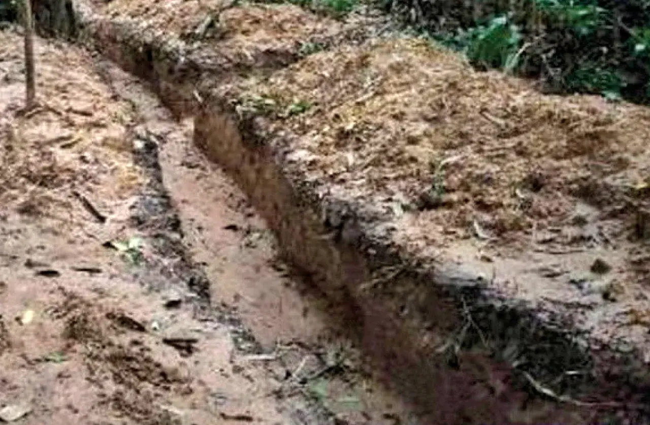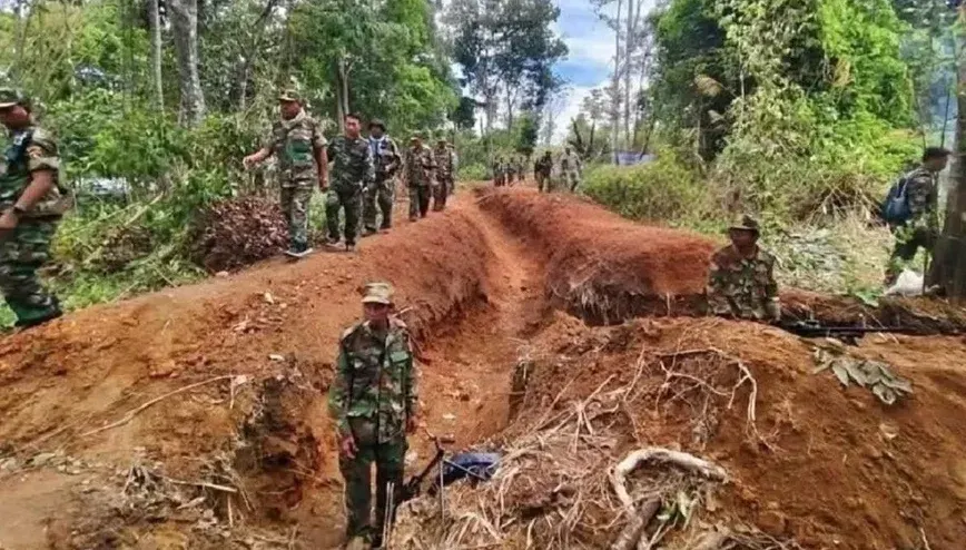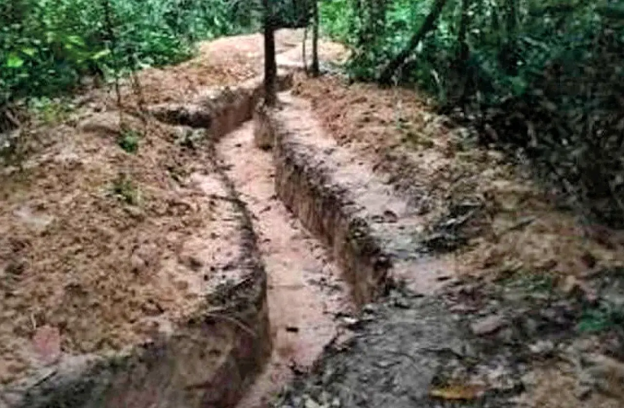 ภาพถ่ายไฟล์นี้แสดงให้เห็นสนามเพลาะที่ทหารกัมพูชาขุดในจังหวัดอุบลราชธานีของประเทศไทย