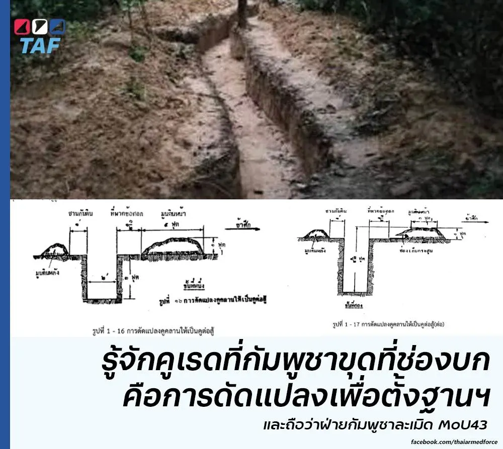 พบบว่าทหารกัมพูชา มีการขุด คู แปลกๆ มีความยาวถึง 650 เมตร ดูจากสภาพน่าจะกำลังดำเนินการ "คูเรด"หรือ คูติดต่อในลักษณะนี้เป็นการดัดแปลงภูมิประเทศเพื่อเป็นที่มั่นที่มั่นคงในการปฏิบัติการรบ
