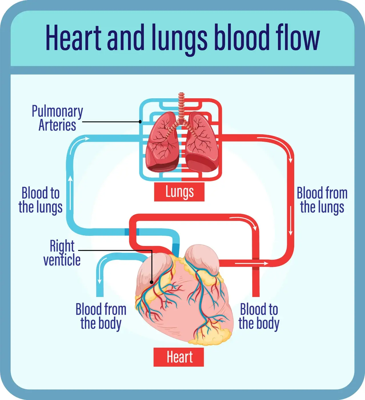 เมื่อเลือดกลับถึงหัวใจ ห้องบนขวาของหัวใจจะรับเลือดดังกล่าวไว้ ก่อนที่จะถูกส่งไปยังปอดเพื่อแลกเปลี่ยนก๊าซออกซิเจนและคาร์บอนไดออกไซด์. การไหลเวียนของเลือดกลับสู่หัวใจนี้ยังช่วยด้วย กล้ามเนื้อโครงร่างที่ช่วยบีบและดันเลือดให้ไหลขึ้นไปยังหัวใจผ่านหลอดเลือดดำ.