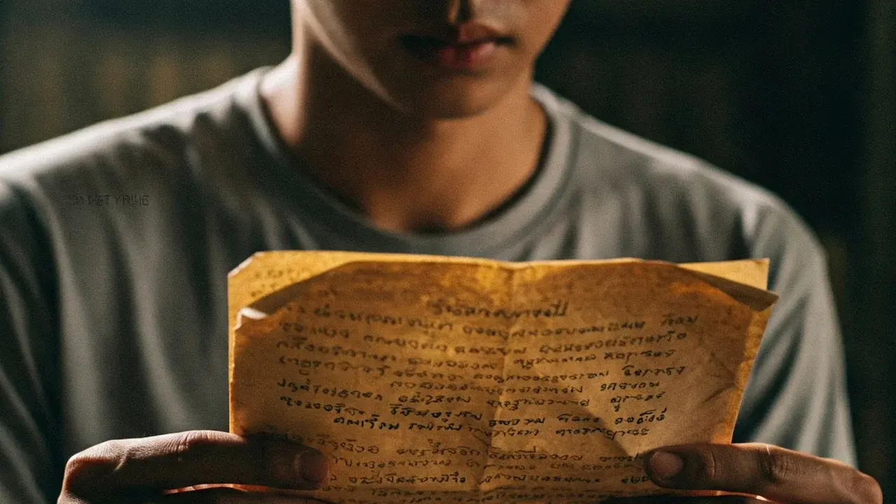 ภัทรกางกระดาษเก่าๆ นั้นออก ตัวอักษรเขียนด้วยลายมือที่บรรจงแต่มีร่องรอยความสั่นเครือ กฎทั้งห้าข้อมีดังนี้: