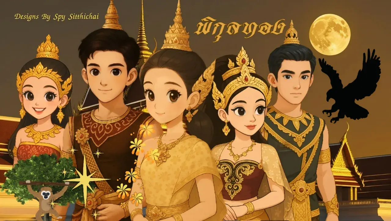 และหลายปีต่อมา พระพิชัยมงกุฎ กับ นางพิกุลทอง มีโอรสด้วยกัน 2 องค์ ชื่อว่า รัก กับ ยม วันหนึ่งนางพิกุลทอง กับพระพิชัยมงกุฎ เสด็จประพาสทุ่ง พร้อมกับโอรสทั้ง 2 ฝ่ายนางยักษ์กาขาว เมื่อคลายจากมนต์สะกดของพระพิชัยมงกุฎ จึงเข้าใจว่า พระพิชัยมงกุฎหนีจากตนไป จึงติดตามมาพบ พระพิชัยมงกุฎจนเจอ และเห็นพระพิชัยมงกุฎพาชายาพิกุลทอง มาประทาสทุ่ง นางยักษ์กาขาวจึงลอบมาซ่อนตัวอยู่ในป่า แล้วจึงเนรมิตดอกบัวดอกใหญ่ขึ้นในบริเวณสระนํ้า เมื่อนางพิกุลทองมาเจอ เห็นดอกบัวเนรมิตดอกใหญ่สวยงามแปลกตา จึงใช้มือเอื้อมเด็ดดอกบัว แล้วจึงถูกนางยักษ์ฉุดลงไปในน้ำ แล้วนางยักษ์จึงสาปนางพิกุลทองให้กลายร่างเป็นชะนี แล้วนางยักษ์กาขาวจึงปลอมตัวเป็นนางพิกุลทอง สวมรอยเข้าวังไปแทน ในขณะนั้น รัก กับ ยม เห็นเหตุการณ์ที่นางยักษ์ได้สาปแม่ของตนให้กลายเป็นชะนี แล้วชะนีพิกุลทองจึงหนีเข้าป่าไป พระพิชัยมงกุฎจึงพานางพิกุลทองยักษ์แปลงขึ้นเรือเข้าวัง รัก กับ ยม จึงบอกความจริงต่อพระพิชัยมงกุฎว่า นางพิกุลทองผู้นี้ ไม่ใช่มารดาของตน แต่มารดาของตน ถูกนางยักษ์กายาว สาปให้เป็นชะนี แล้วหนีเข้าป่าไป พระพิชัยมงกุฎรู้สึกกริ้วโกรธ จึงไล่โอรสทั้ง 2ขึ้นฝั่ง แล้วพานางยักษ์แปลงกลับเข้าวังกับตน