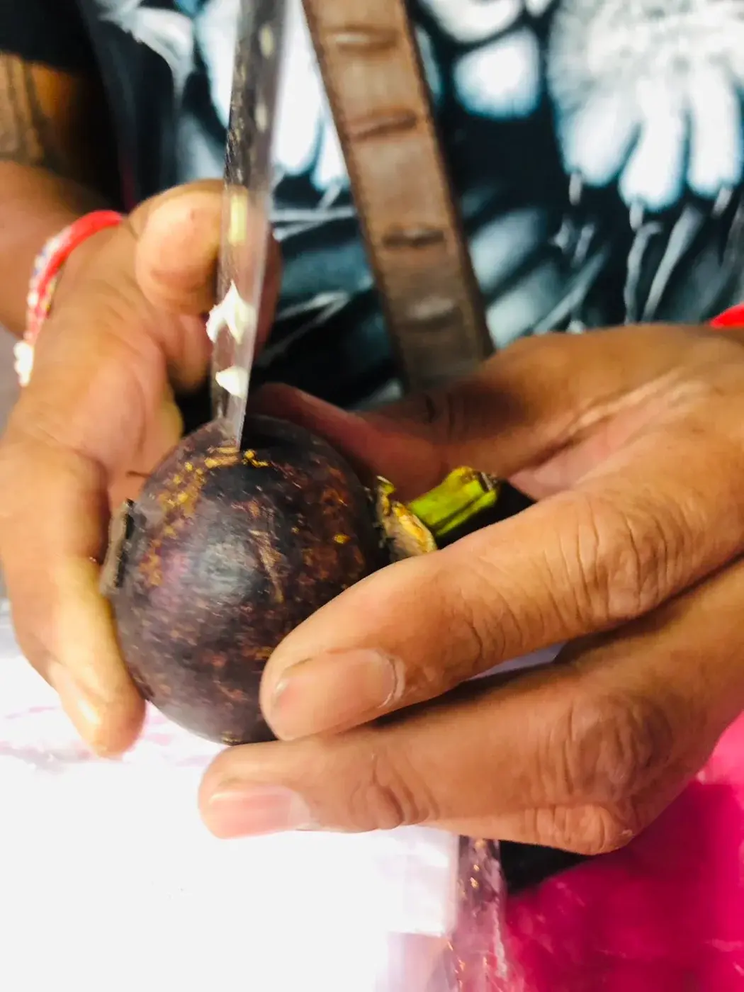 มังคุดนั้นหลังจากที่เราผ่าแล้ว ภายในเวลาไม่ถึงสองนาทีสีของเปลือกมังคุดจะเปลี่ยนสีทันที จากที่สีชมพูสดจะค่อยๆ กลายเป็นสีน้ำตาลบ้างสีส้มบ้าง แต่ไม่ได้ส่งผลต่อเนื้อของมังคุด ผ่าเสร็จแล้วทานได้เลย ในส่วนของเปลือกมังคุดนั้นเรายังสามารถที่จะนำไปตากแห้งแล้วนำมาทำชามังคุด หรือทำสมุนไพรได้ด้วย แต่ต้องมีความรู้ในเรื่องนี้ด้วยถึงจะทำได้