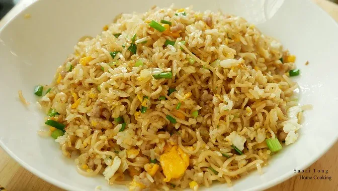 สูตรข้าวผัดมาม่าหมูสับ ทำง่าย อร่อยครบในจานเดียว