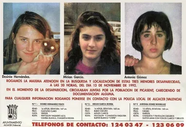 วันศุกร์ที่ 13 พฤศจิกายน 1992 เป็นวันที่เปลี่ยนชีวิตของสามครอบครัวในเมืองอัลกาเซ ประเทศสเปน ไปตลอดกาล เมื่อ อันโตเนีย, มีเรียม, และเดซีเร่ เด็กสาววัย 14-16 ปี ได้หายตัวไปอย่างลึกลับระหว่างเดินทางไปงานปาร์ตี้ในเมืองปิกาเซ็น ครอบครัวยืนยันว่านี่ไม่ใช่พฤติกรรมปกติ ไม่มีใครพบเห็นพวกเธออีกหลังจากที่ตัดสินใจโบกรถคนแปลกหน้า เพราะพลาดรถโดยสารประจำทาง