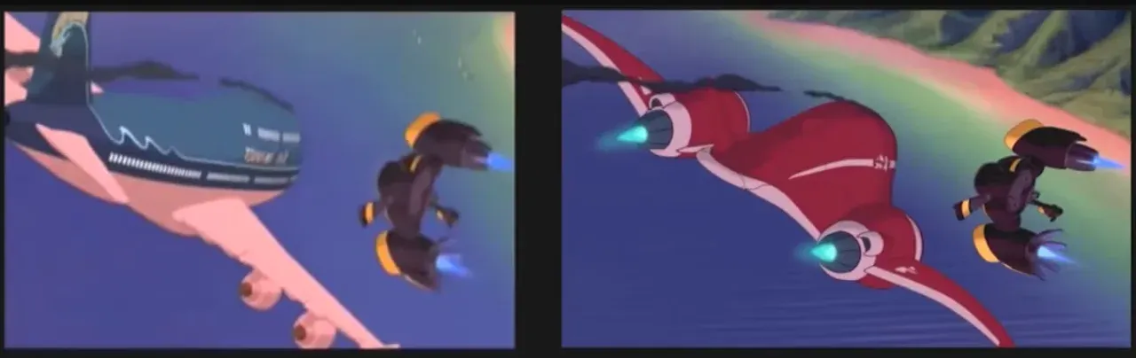 และถ้าใครยังไม่รู้ในช่วงปี 2001 อนิเมชั่นต้องวาดด้วยมือทั้งหมดและเติม CGI ลงไป โดยการปรับเปลี่ยนโมเดล CGI ของเครื่องบิน 747 ให้กลายเป็นยานอวกาศสีแดงที่เรียกว่ายุ่งยากกว่าวาดมือล้วนๆ แถมฉากเครื่องบินมีเยอะและหลายฉากก็บินเฉี่ยวตึกด้วย ทำให้เสียเวลาและงบประมาณเพิ่มแต่มันก็เป็นสิ่งที่ดีเพราะตอนนั้นคนทั่วโลกยังคงตกใจและเศร้าเสียใจกับเหตุการณ์นี้ ซึ่งถ้าอนิเมชั่น Lilo & Stitch ยังดึงดันออกฉายไปแบบไม่แก้ซีนนี้คงจะโดนด่ากระเจิงแน่นอน นับเป็นการใส่ใจของทีมงานจริงๆ