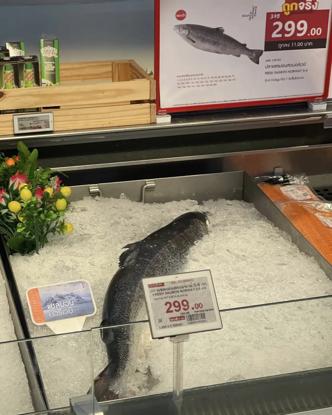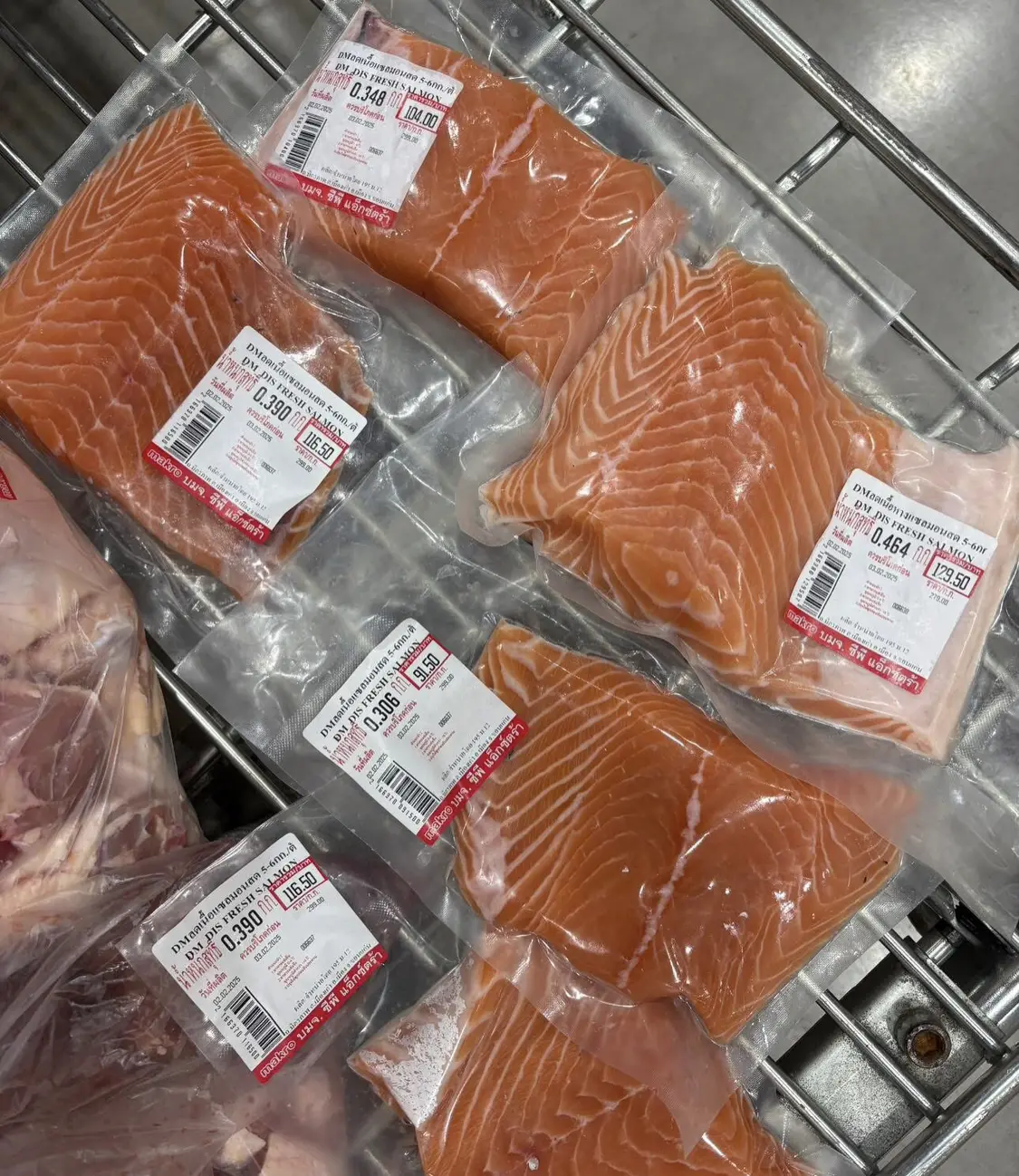 แซลม่อนที่ว่าราคาแพงมาดูตรงนี้ ชิ้นใหญ่มากแต่ราคาไม่ถึงร้อยบาท และร้อยต้นๆ อย่างนี้ถูกใจแม้บ้านกันเลย