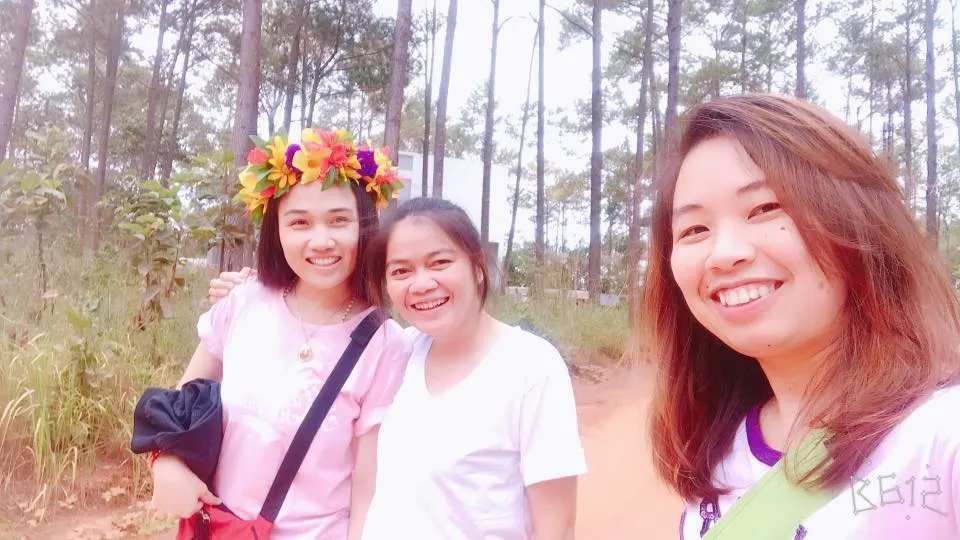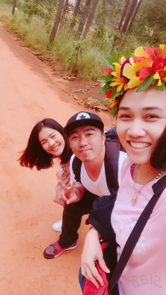 ดอกไม้บนหัวนั้นคือดอกไม้สด ดอกไม้ป่า ระหว่างทางที่ขับรถมานั้นจะมีชาวบ้าน หรือเด็กน้อยที่เข้าไปเก็บดอกไม้ในป่าจากนั้นนำมาสานเป็นมงกุกฏขายเพื่อจะได้มีรายได้ไปประทังชีวิต เลยซื้ออันเดียวแต่ใส่วนกันไปมาถ่ายรูป
