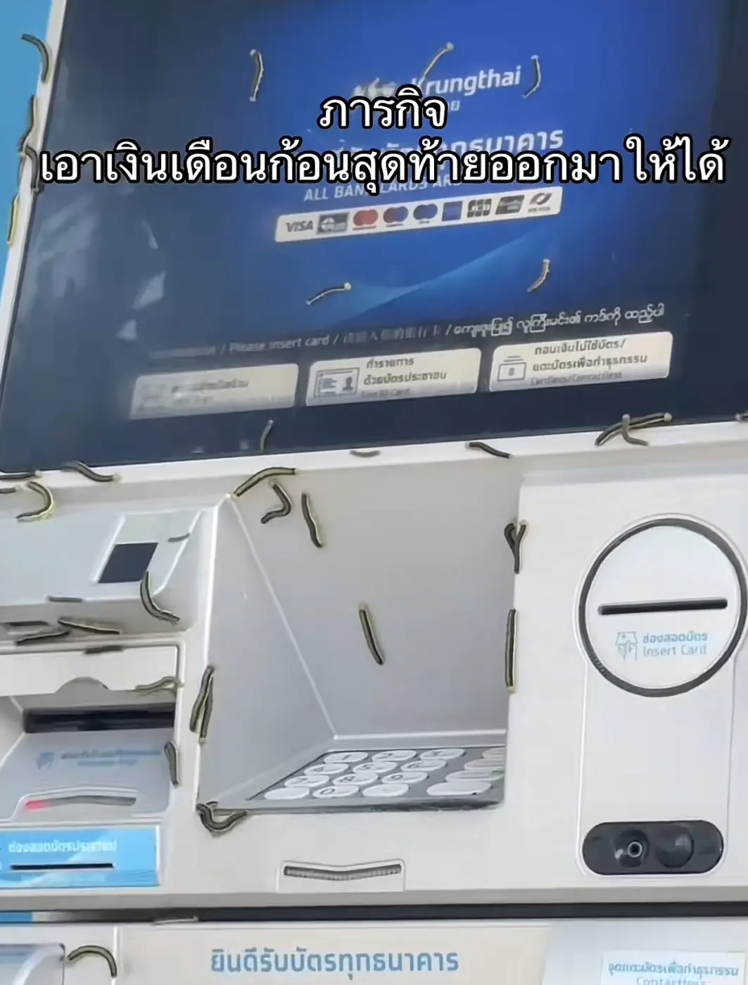 ใจกล้าแท้!! ภารกิจกดเงินจากตู้ ATM ที่เต็มไปด้วยหนอนยั๊วเยี๊ยะ โอ้ย!! ขนลุกขนพอง 😱