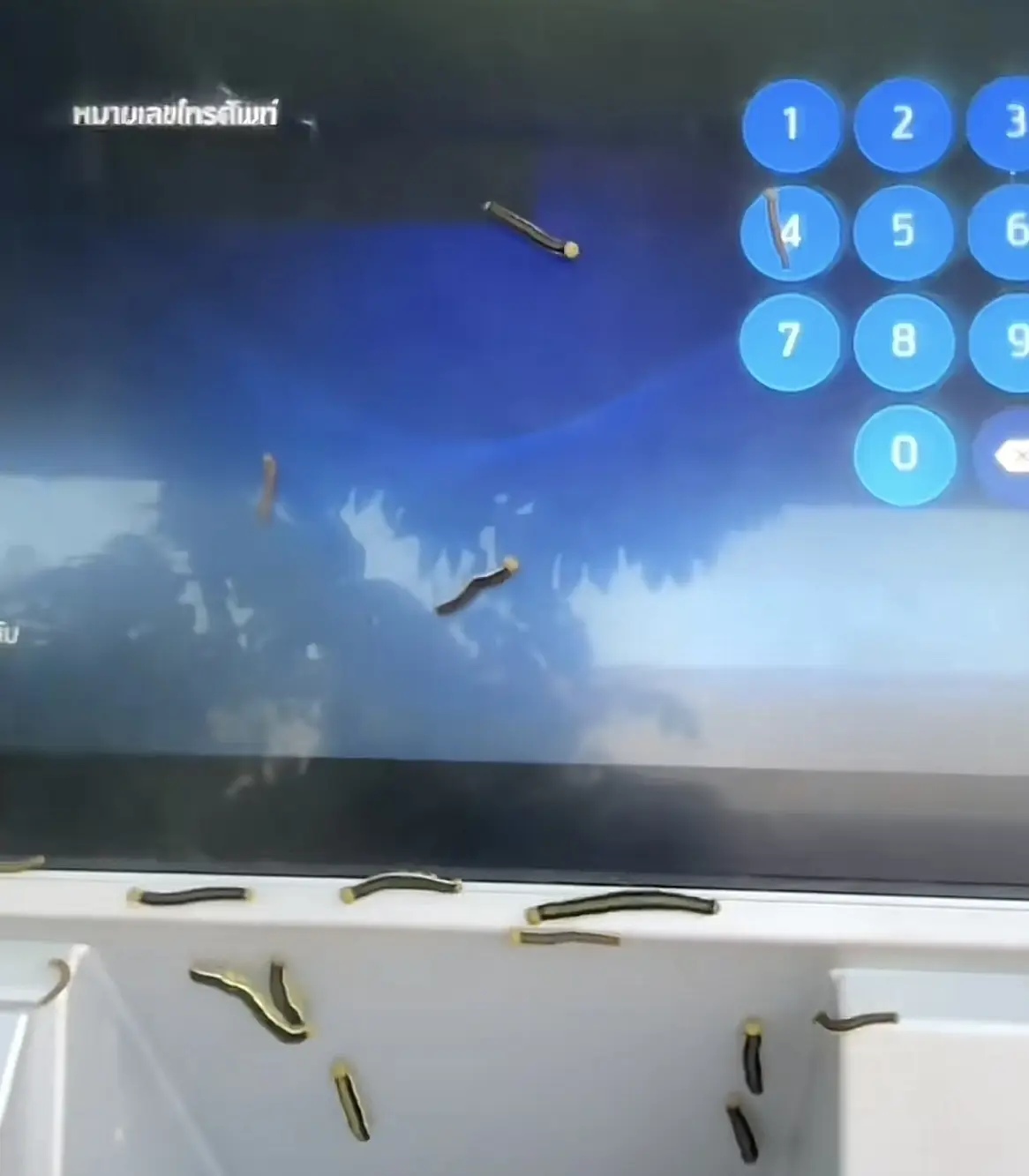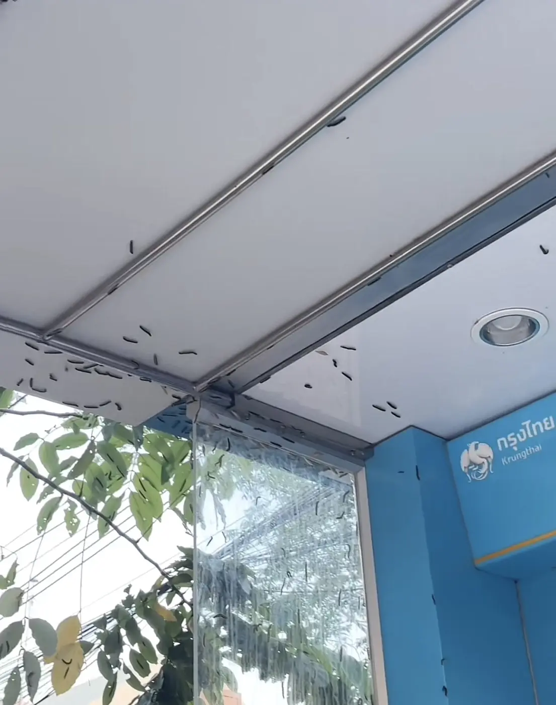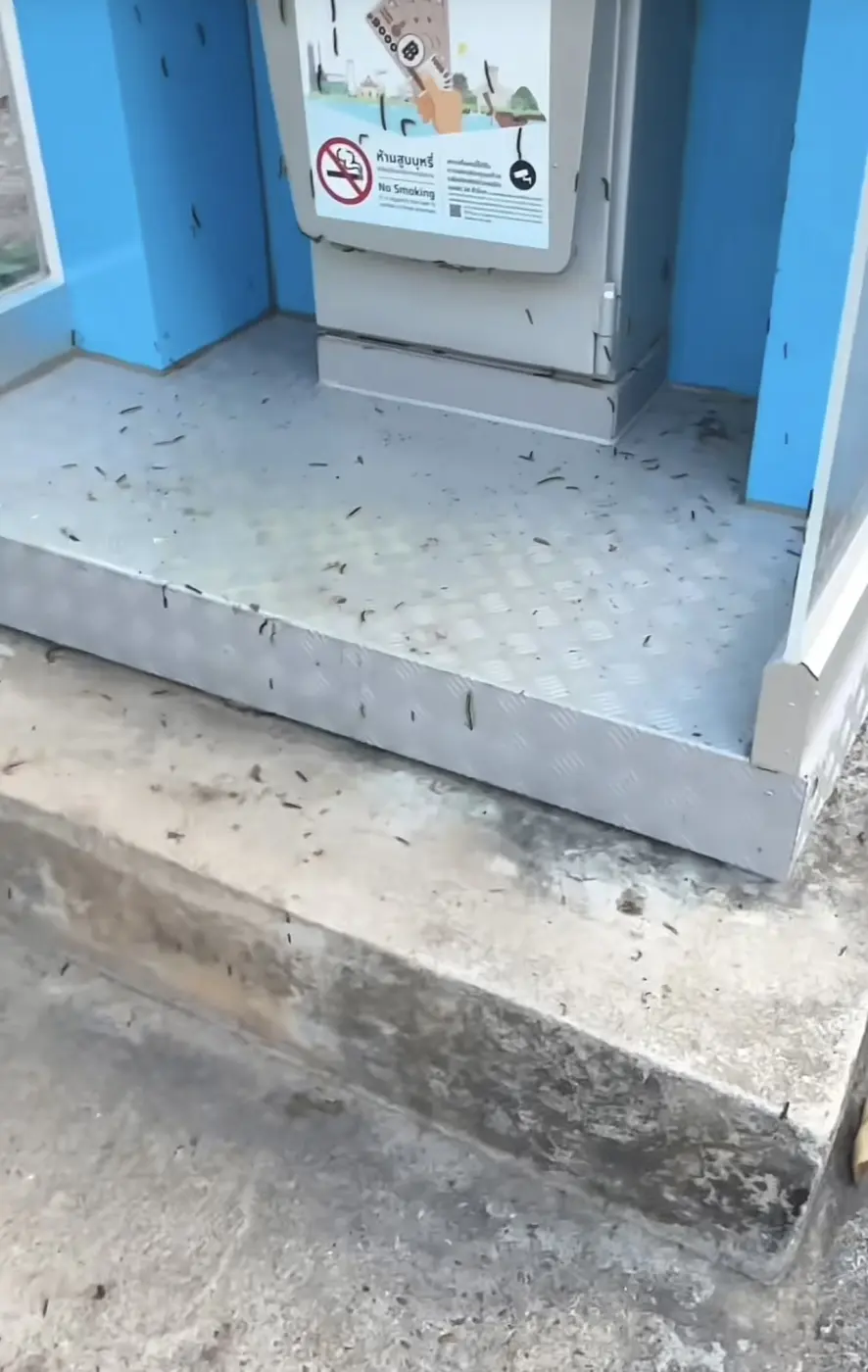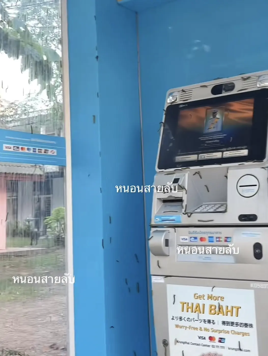 และหนอนก็น่าจะมาจากต้นใชไม้ใกล้มๆ บอกเลยว่าคนที่กลัวหนอน ขนลุก ขนชัน ขนตั้งแน่ๆ แต่เธอคนนี้ไม่กลัว หรืออาจจะกลัวแต่ทำใจดีสู้หนอน ยังใจสู้เข้าไปกดเงินจนได้ ยอมเลยจริง ๆ ถ้าเป็น...ขออนุญาตไปใช้บริการตู้อื่นก็แล้วกัน บรึ๋ย!!! 😂