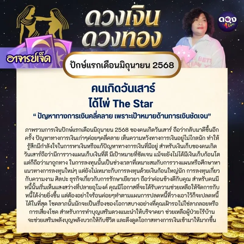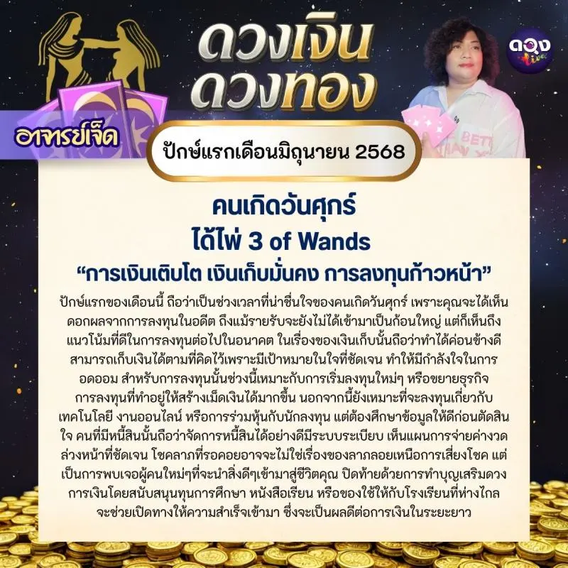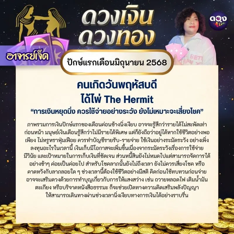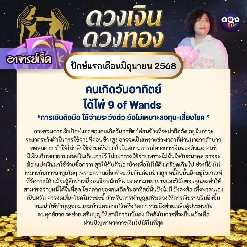 ดวงเงินดวงทอง ปักษ์แรก เดือนมิถุนายน 2568 โดย อาจารย์เจ็ด