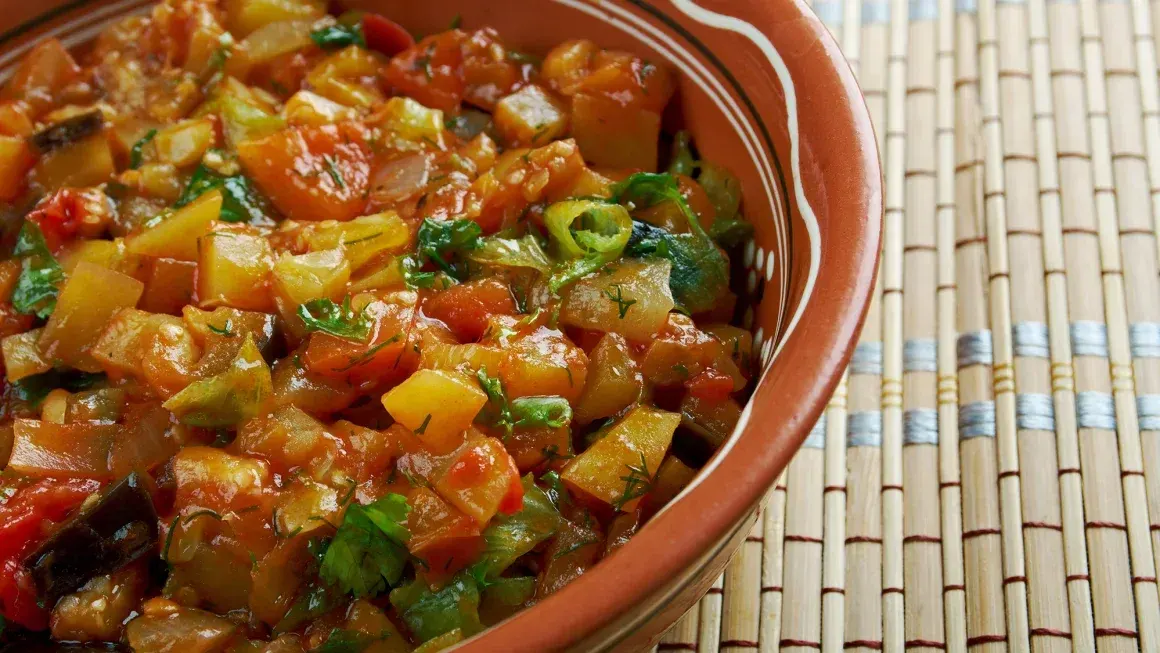 อาหารตุรกีประกอบด้วยอาหารประเภทผักมากมายที่เรียกว่า zeytinyagli yemegi ซึ่งเป็นอาหารที่ปรุงด้วยน้ำมันมะกอก โดยส่วนใหญ่มีส่วนประกอบหลักเป็นผัก เช่น ถั่วเขียว อาติโช๊ค และแน่นอนว่ามีมะเขือยาวด้วย
